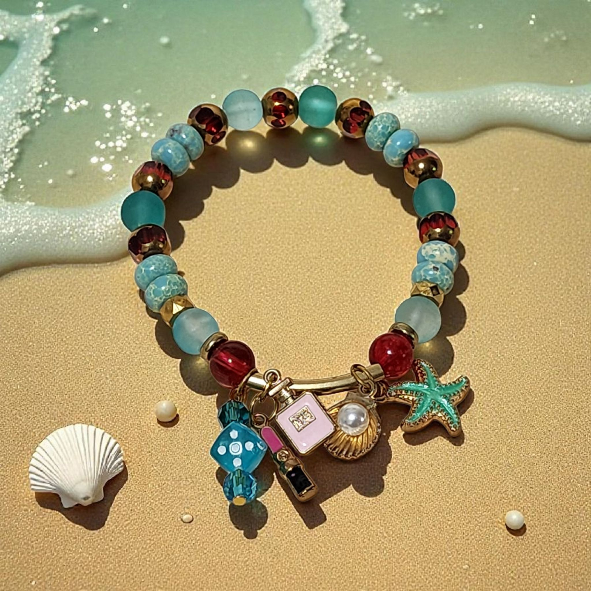 - Charms: starfish, seashell with faux pearl, gem square, sea dice, and assorted ocean-themed accents
