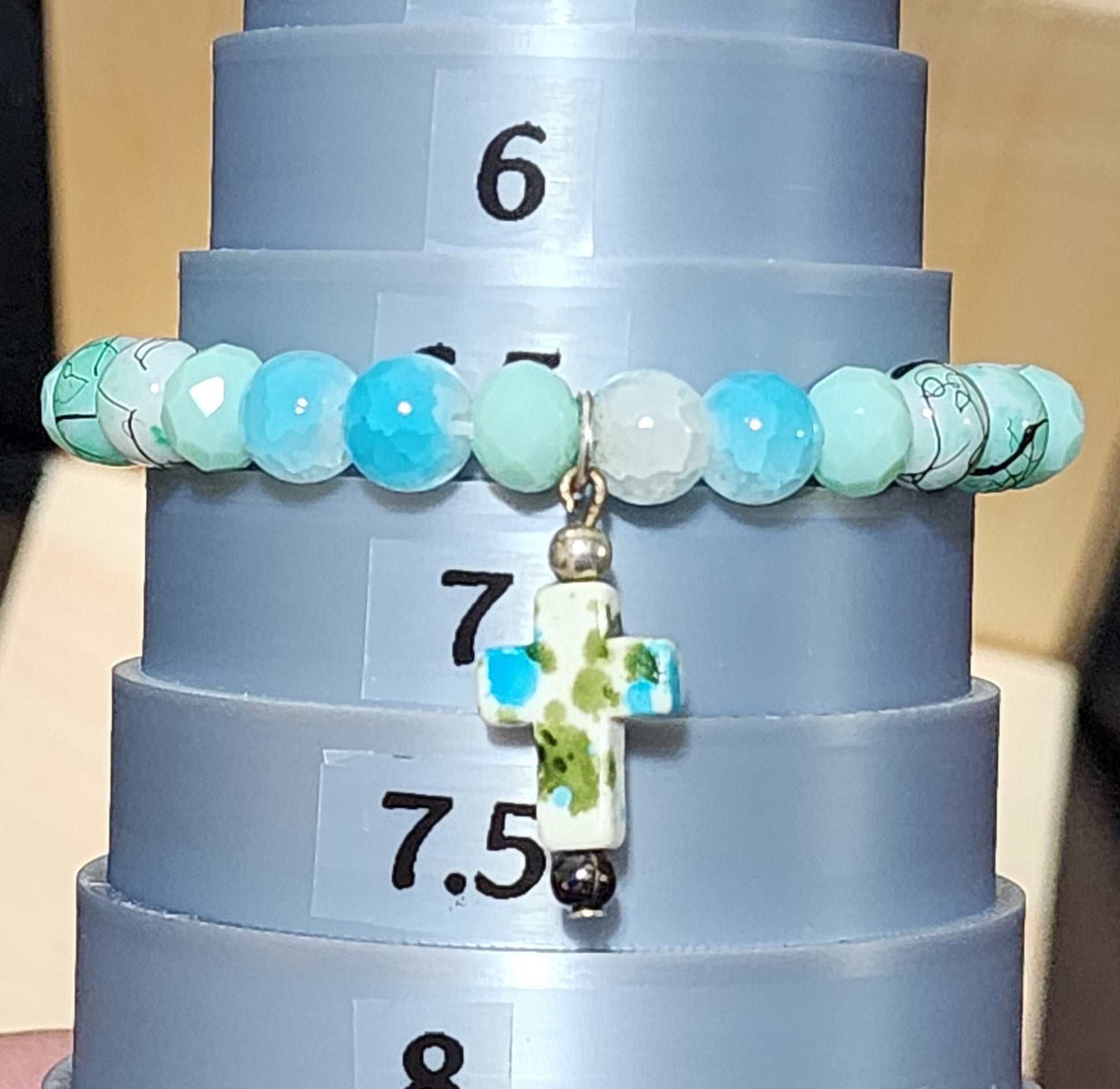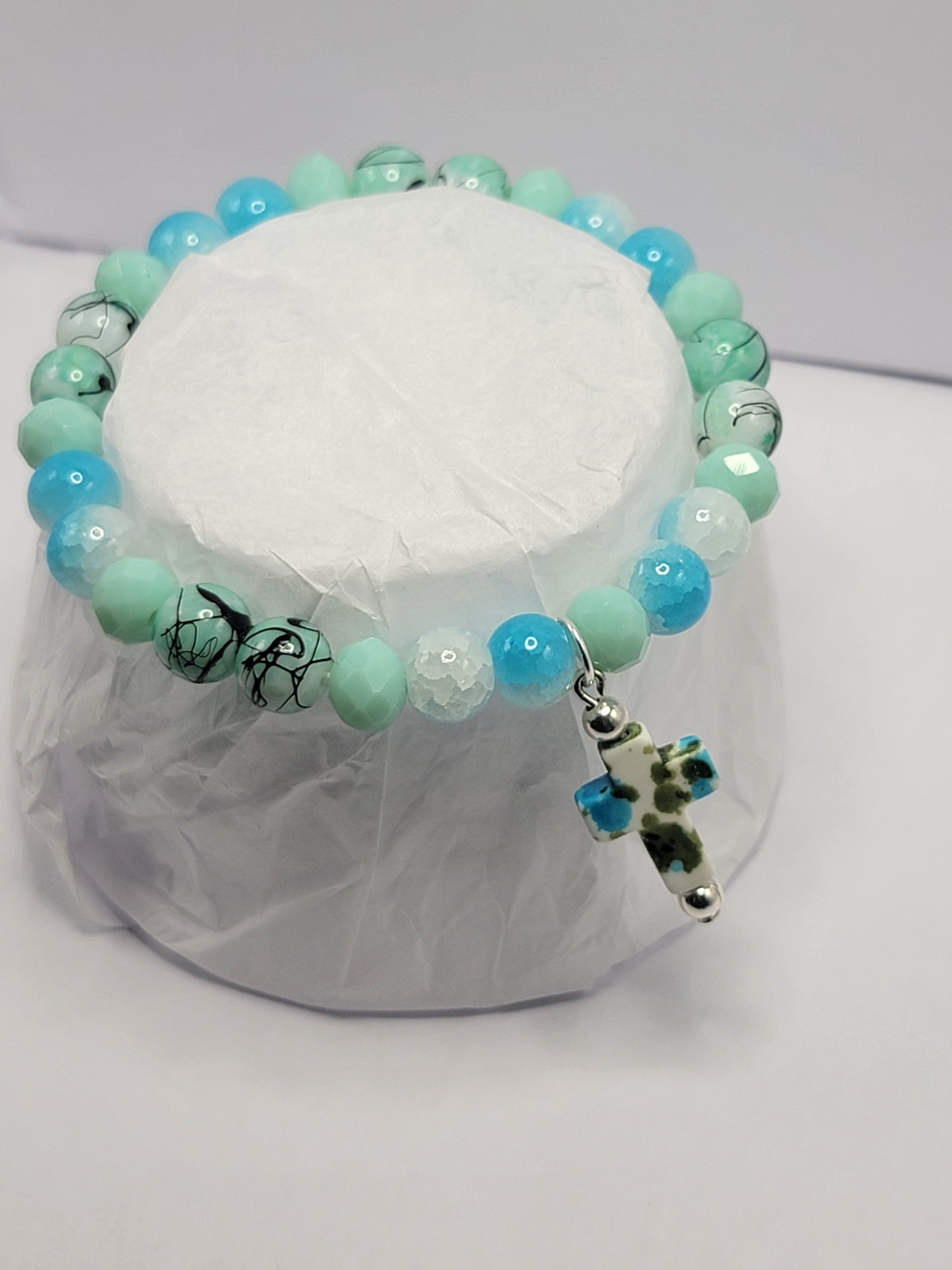Drift into serenity with our Seafoam Serenade Bracelet. A delightful mix of turquoise, pearly whites, and oceanic hues, reminiscent of a coastal retreat. Embellished with a dainty floral cross charm, this bracelet adds a touch of whimsy and elegance to any outfit. Perfect for beach lovers, boho enthusiasts, or anyone who treasures handmade accessories with love and care. Gift yourself or a loved one with this little piece of ocean magic!